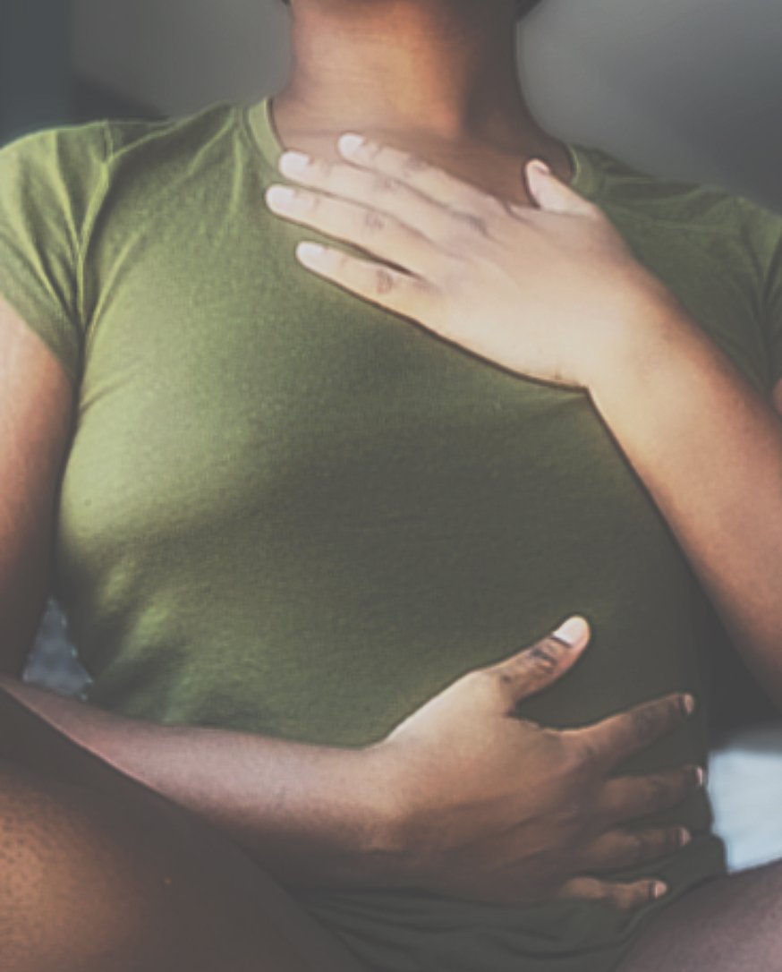 Place one hand on your heart and one on your belly.